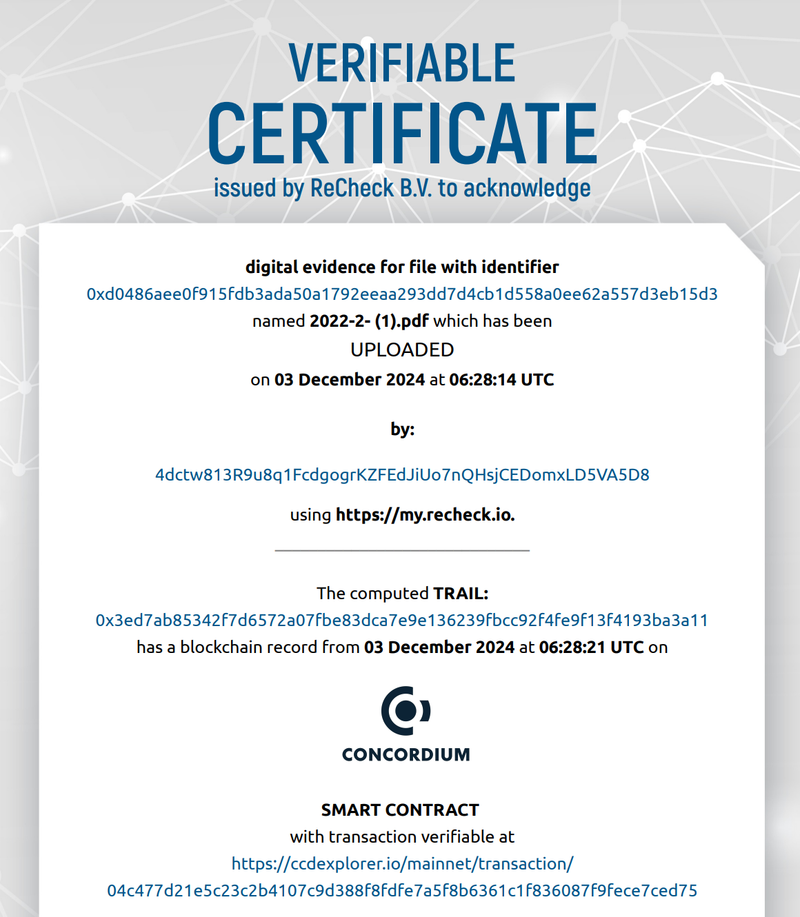 ReCheck is excited to announce its successful integration with Concordium, one of the world’s most secure and privacy-centric blockchain protocols.